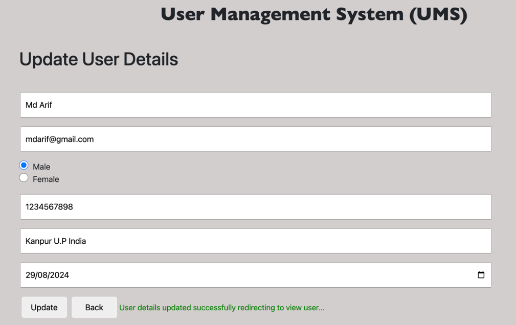 Here we will update the user's details. It will look like: