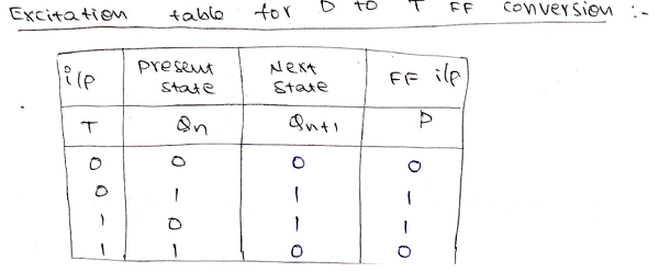 Step 2: Using the excitation of given JK flip-flop, find the J and K values and complete the conversion table as: