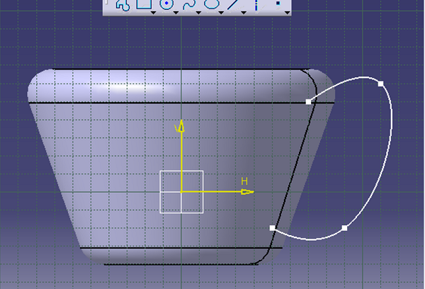 Step 9: The handle for the mug has to be created so select the face of the mug then enter the sketch workbench. From there on select the free curve line option to draw the handle.