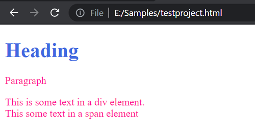 This explains best how :not selector works? In this example, only h1 heading tag will be colored royalblue else all the tags will be colored in deeppink.