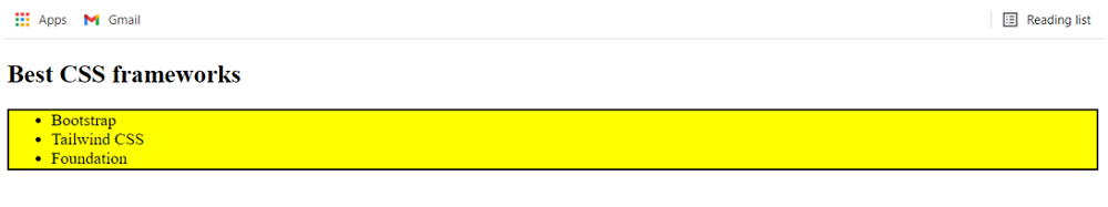 is a comment which tells us about the selector used in CSS. As you can see in the output, the comment is not displayed by the browser.