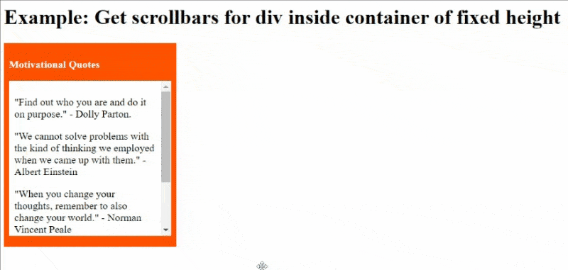 <h1>Example: Get scrollbars for div inside container of fixed height</h1>