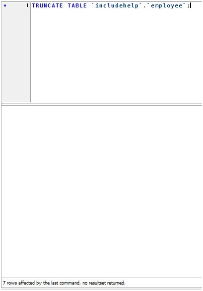 TRUNCATE TABLE 'includehelp'.'employee';