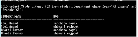 1) We have to find the Student_Name, HOD whose Dean is R. K Sharma and Branch is CS using SQL query.