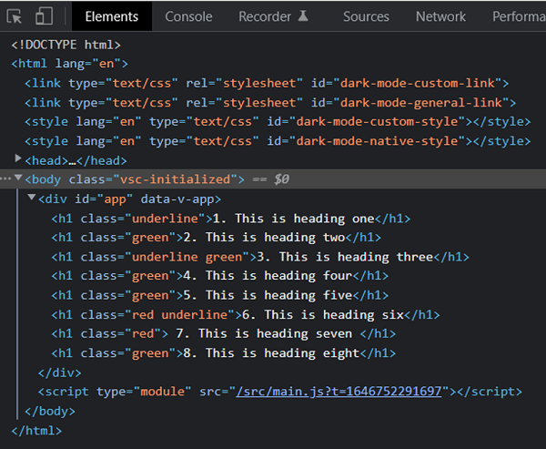 <h1 :class="{ green: isGood }">8. This is heading eight</h1>